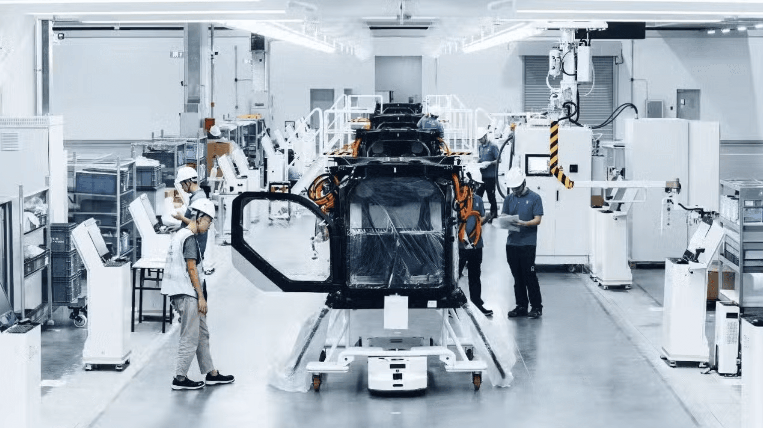 ულტრათანამედროვე ქარხანა: 2025 წლის სექტემბერში გუანჯოუში მასობრივი წარმოების ქარხნის მშენებლობა დასრულდა (120,000 კვ.მ. ფართობი), რომელიც მსოფლიოში პირველი საწარმოა, სადაც საფრენი აპარატების ასაწყობად თანამედროვე კონვეიერული ხაზი გამოიყენება. სრული დატვირთვით მუშაობისას, ქარხანა ყოველ 30 წუთში ერთ მფრინავ აპარატს გამოუშვებს.